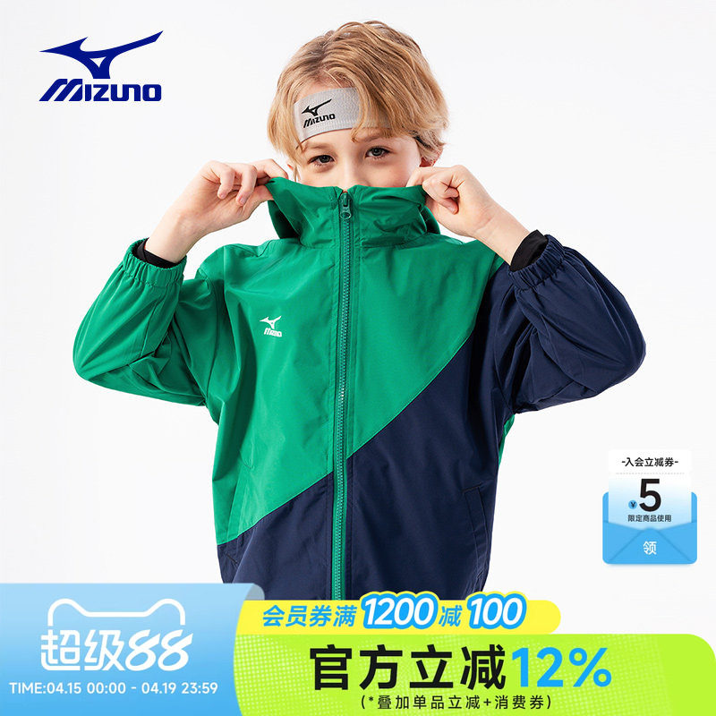 Mizuno美津浓KIDS儿童外套防泼水春秋新款男女中大童连帽防风学生