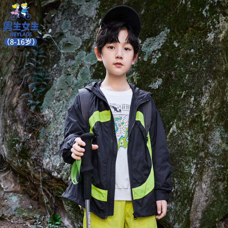 男童冲锋衣外套儿童休闲防风衣女童拉链衫春秋薄款中大童连帽上衣