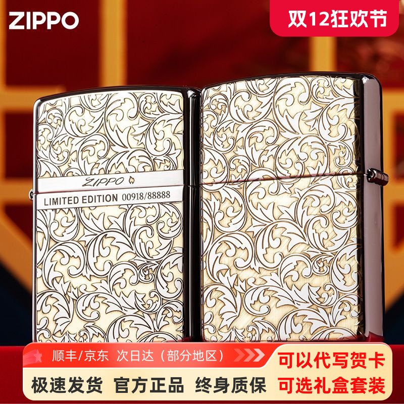 zippo打火机芝宝正版幸运唐草限量编号正品雕刻煤油防风男士礼物