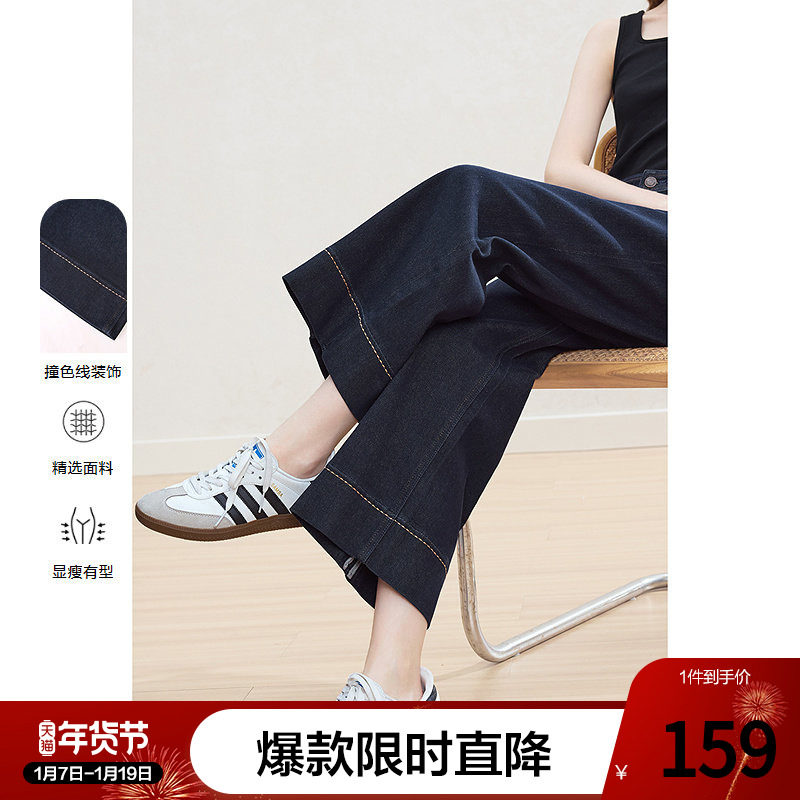 三福微喇牛仔裤女2026新款春季小个子复古蓝色喇叭裤子女装504324