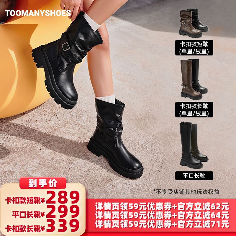 【所有女生的衣橱直播间】Toomanyshoes机车手厚底短靴棕色骑士靴