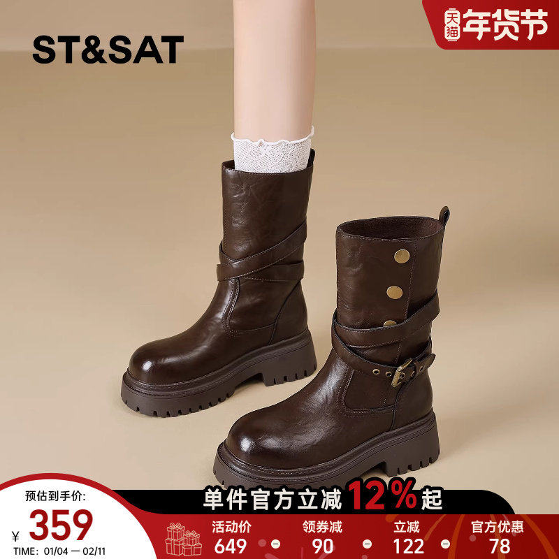 星期六厚底马丁靴女2025款冬季英伦风复古美拉德中筒靴潮酷机车靴