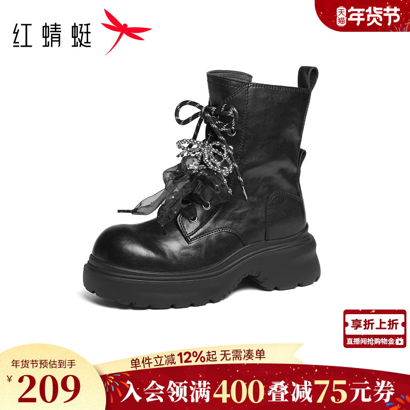 红蜻蜓马丁靴女款秋季女鞋英伦复古厚底机车靴通勤单靴短筒靴子女