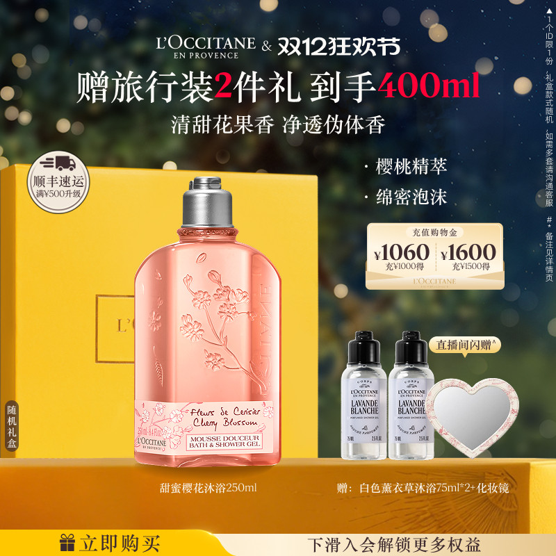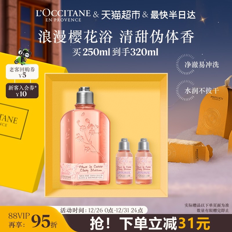 欧舒丹沐浴露甜蜜樱花香清洁留香洗澡沐浴液生日礼物礼盒冬季男女