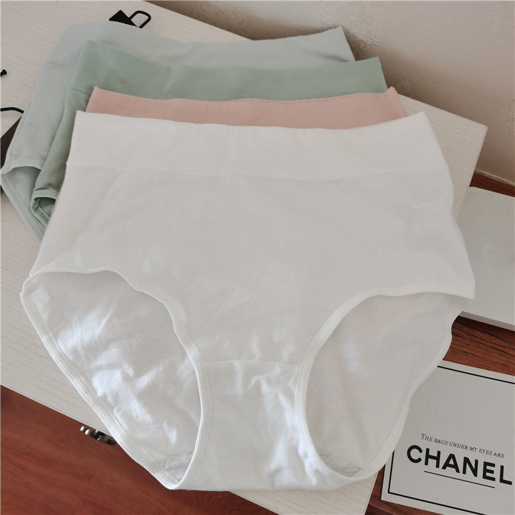 纯棉高腰内裤女大码胖mm宽松棉质面料纯色简约包臀透气三角裤衩头