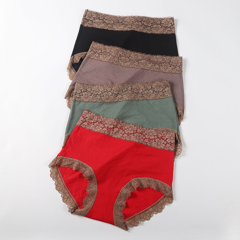 女士纯棉高腰内裤女全棉抗菌裆透气舒适无痕镂空大码蕾丝三角裤夏
