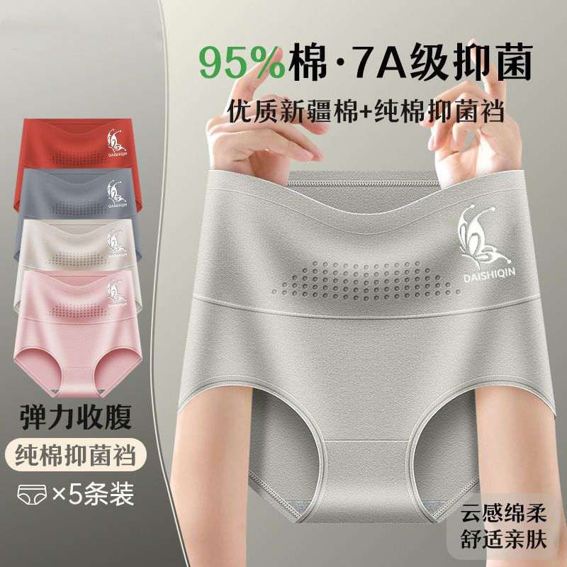 5条装纯棉高腰内裤女抗菌收腹提臀暖宫大码胖mm三角短内裤新款