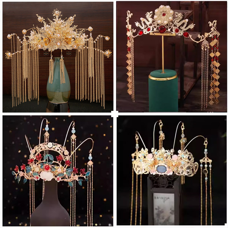 新娘古装秀禾头饰汉服中式流苏凤冠霞帔步摇秀禾服敬酒服结婚配饰