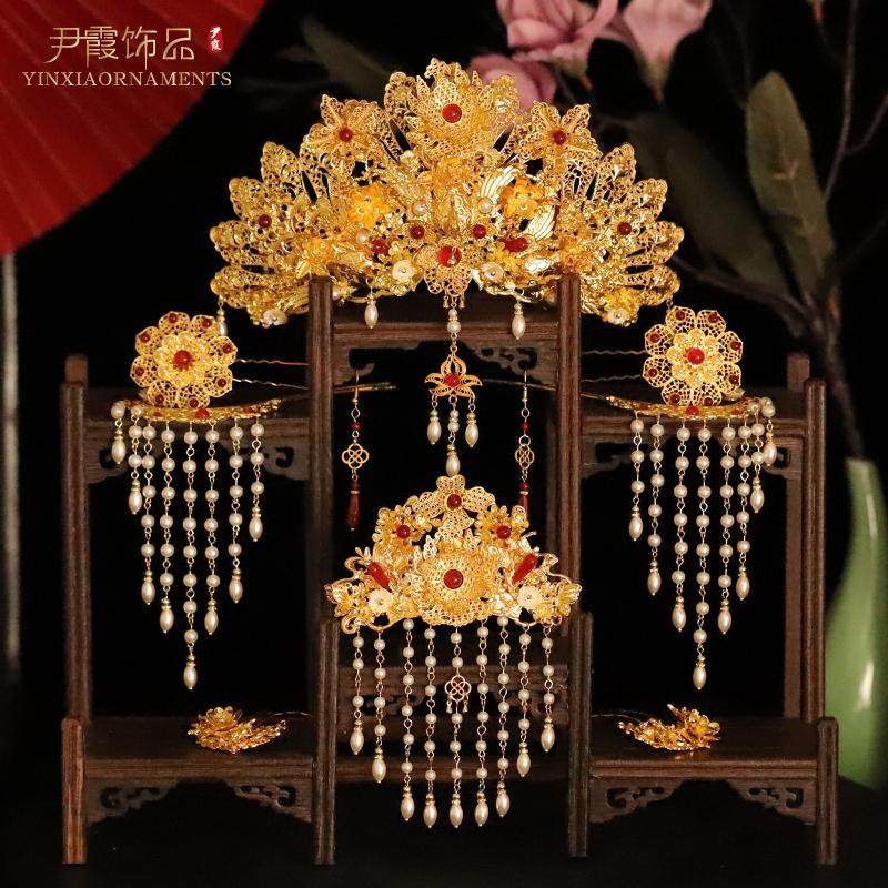 唐风新娘头饰汉服明制婚礼发冠凤凰发簪套装古装头饰原创设计尹霞