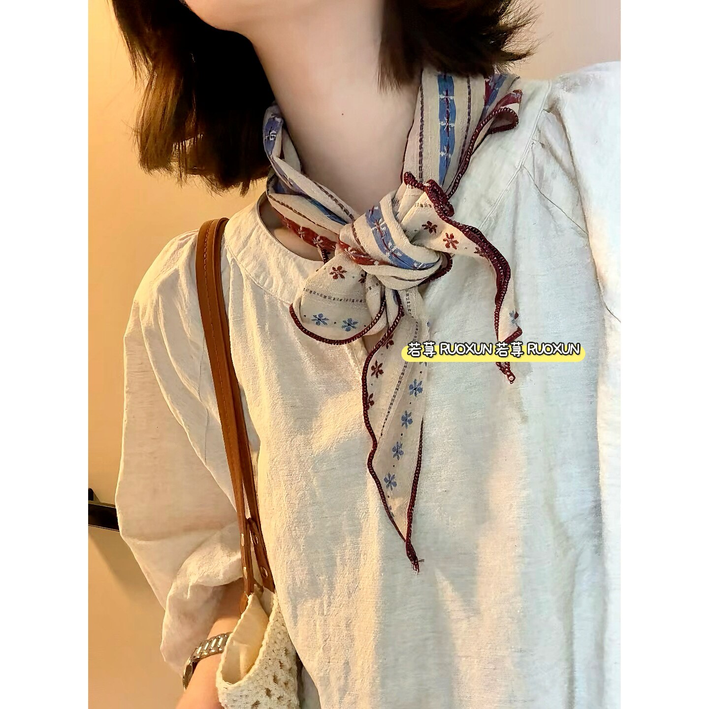 RUOXUN/复古文艺棉麻丝巾女系脖2025新款百搭围巾护颈日韩风领巾