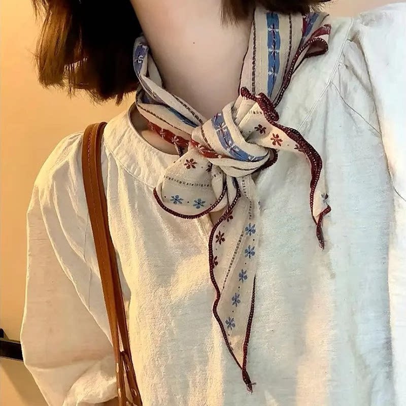 复古棉麻三角巾丝巾2026新款百搭护颈头巾装饰领巾高级感围脖配饰