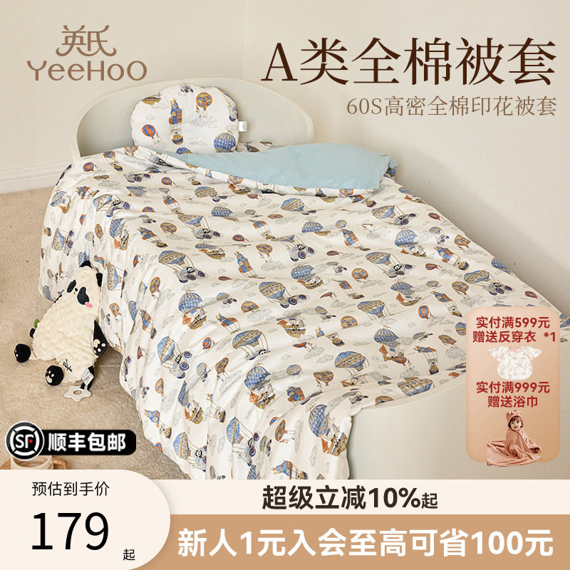 英氏乐享婴儿被套纯棉a类60支贡缎婴儿床被罩儿童全棉单件幼儿园