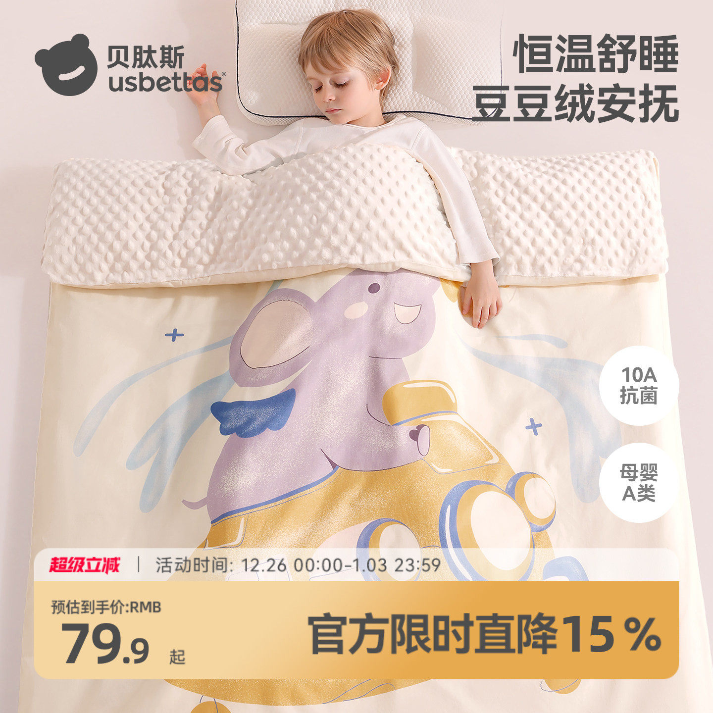 可优比婴儿被子儿童豆豆被宝宝幼儿园恒温冬季四季盖毯新生儿冬被