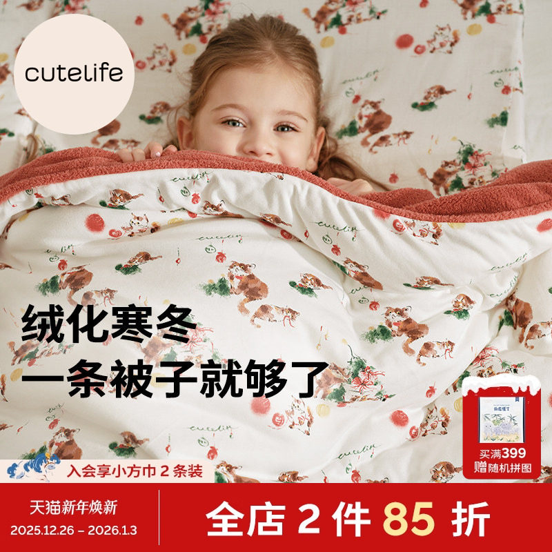 cutelife婴儿被子亲子宝宝盖被秋冬暖绒被暖感防寒防静电加厚冬被