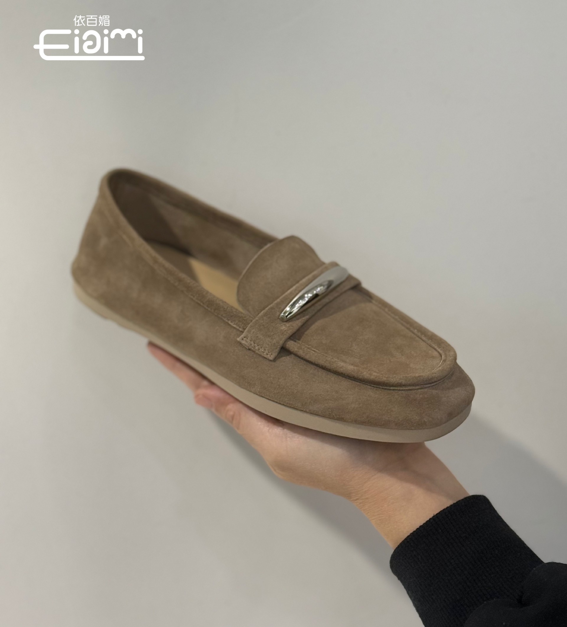 H55女鞋鹿野2025冬季新款休闲一脚蹬加棉百搭老钱英伦风袋鼠鞋