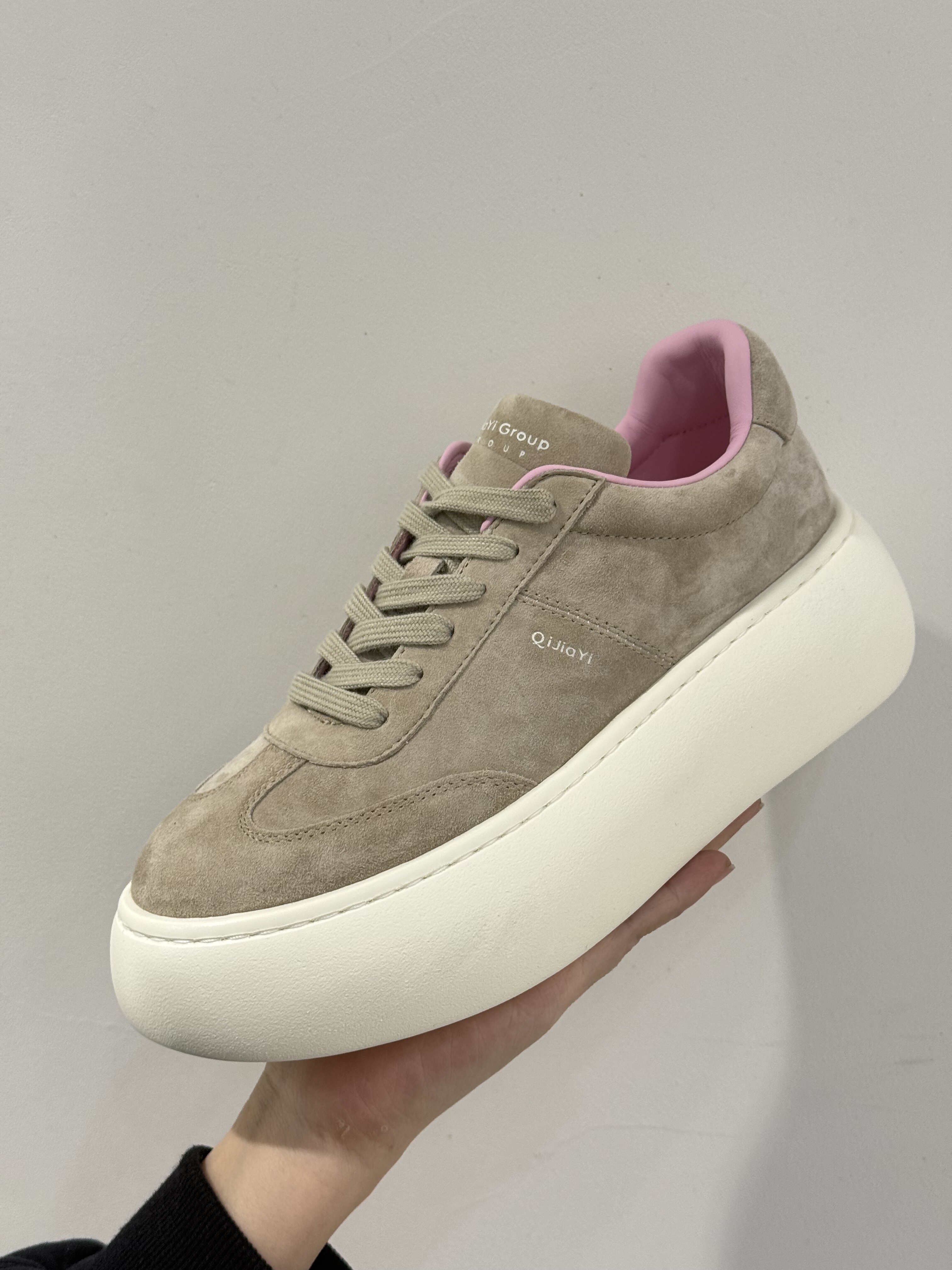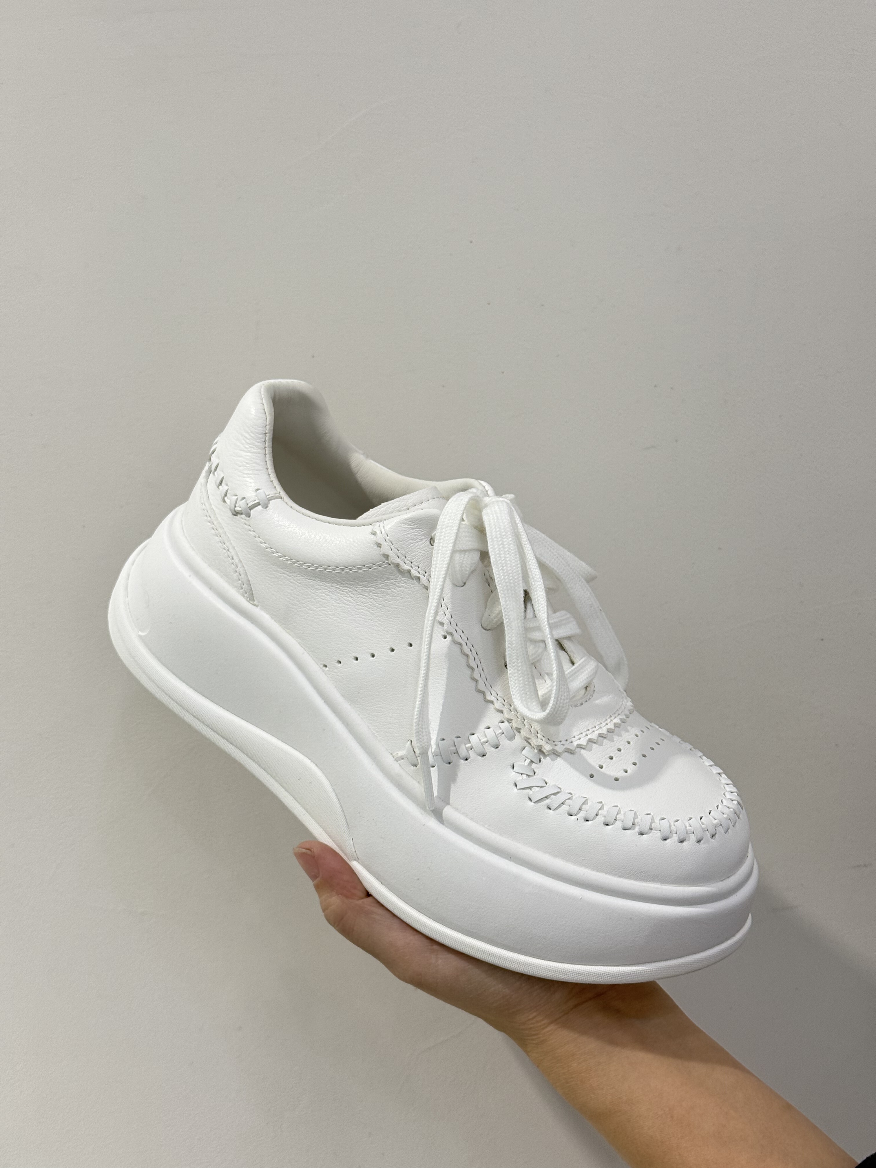 依百媚2026春季新款真皮时尚休闲圆头编织厚底百搭潮鞋女小白鞋