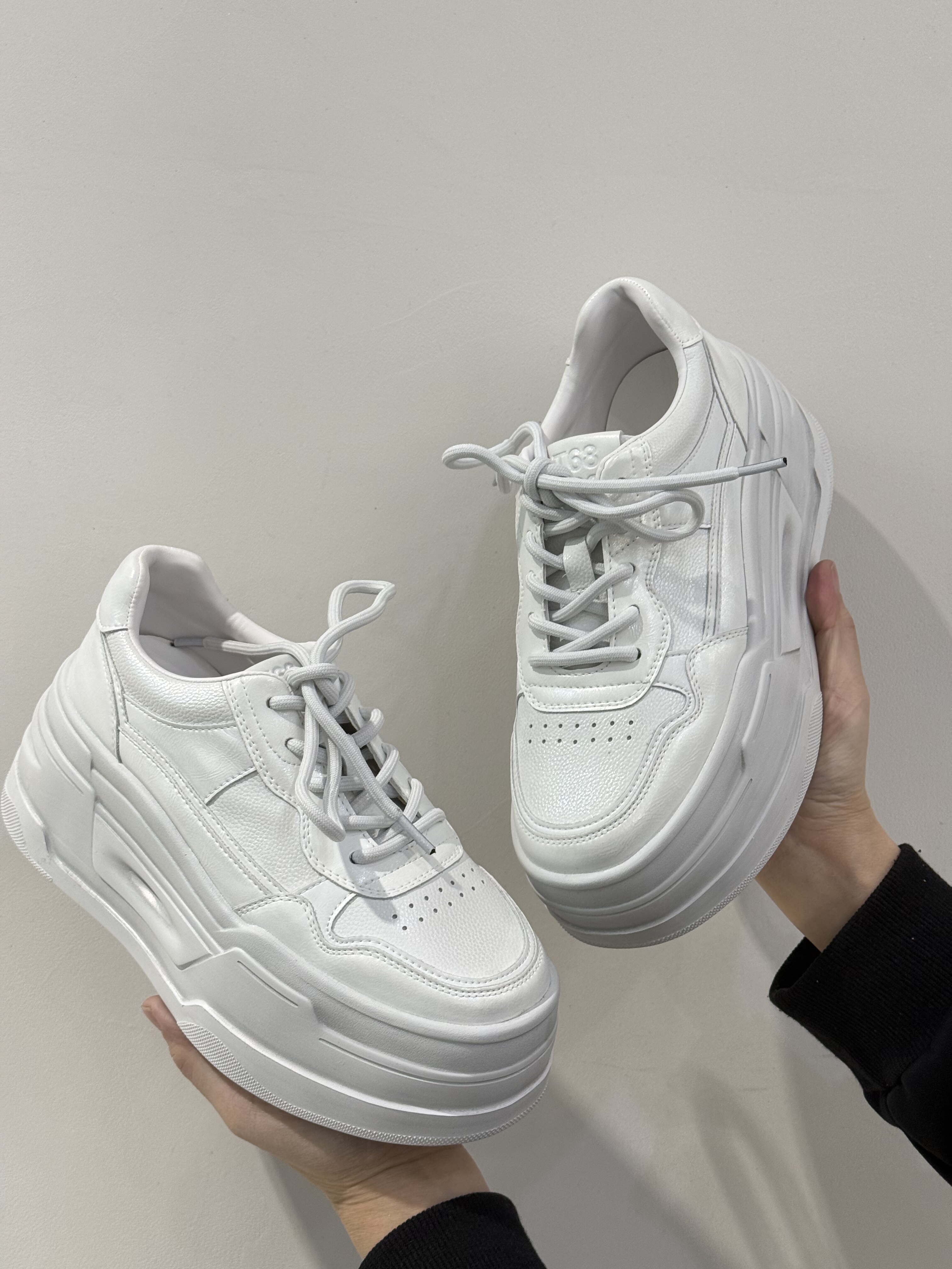 依百媚2026春季新款真皮时尚休闲圆头厚底百搭潮鞋女小白鞋德训