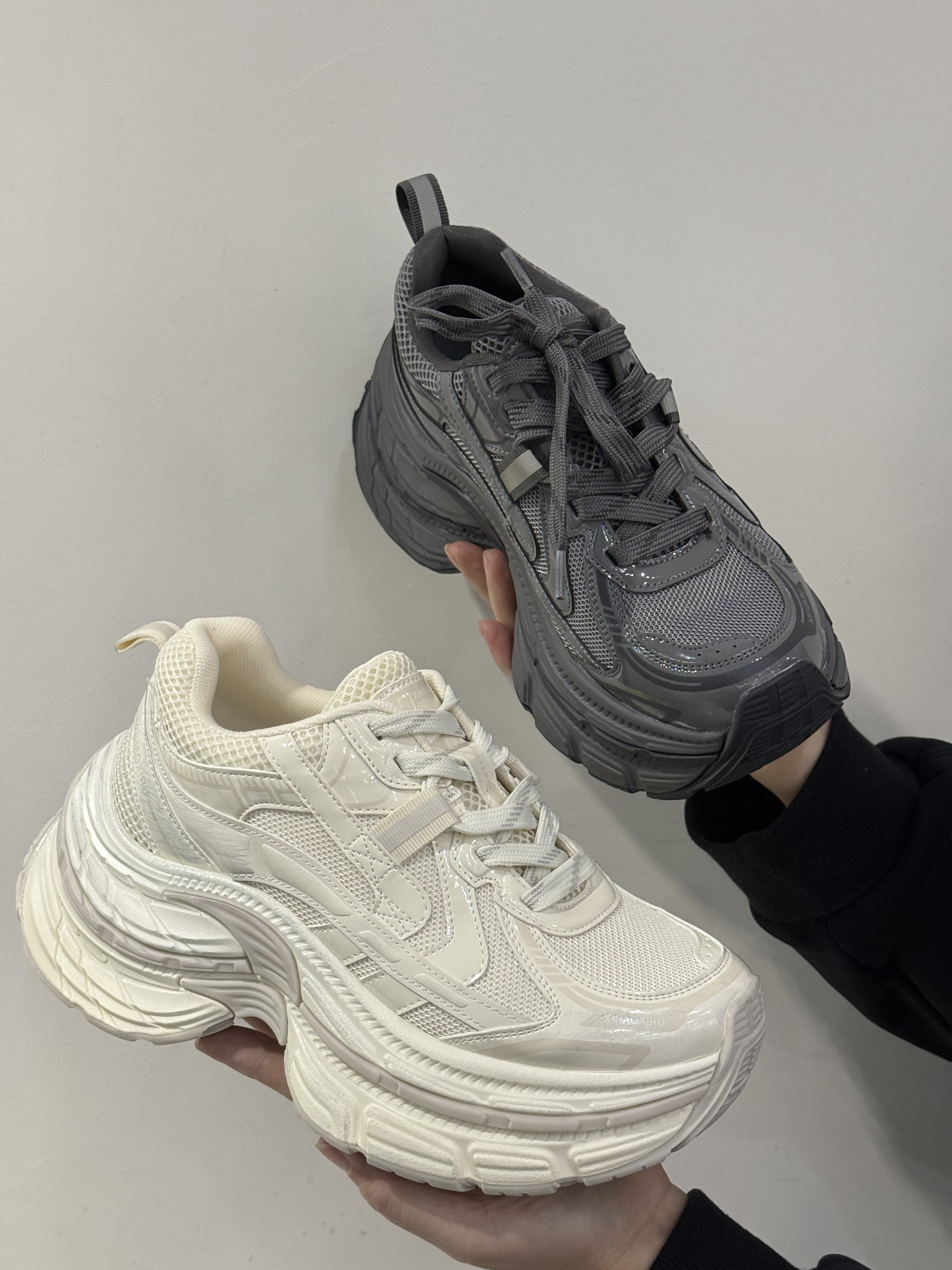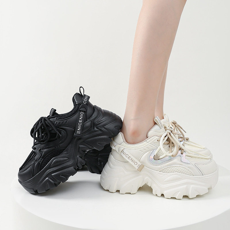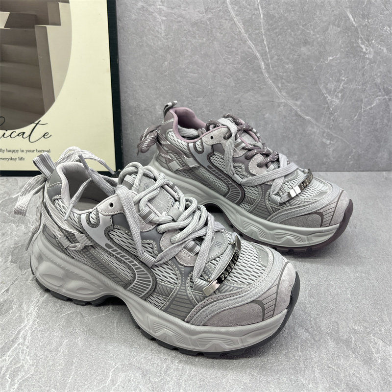 2026春季休闲厚底老爹鞋女网面透气系带圆头增高运动鞋百搭潮鞋女