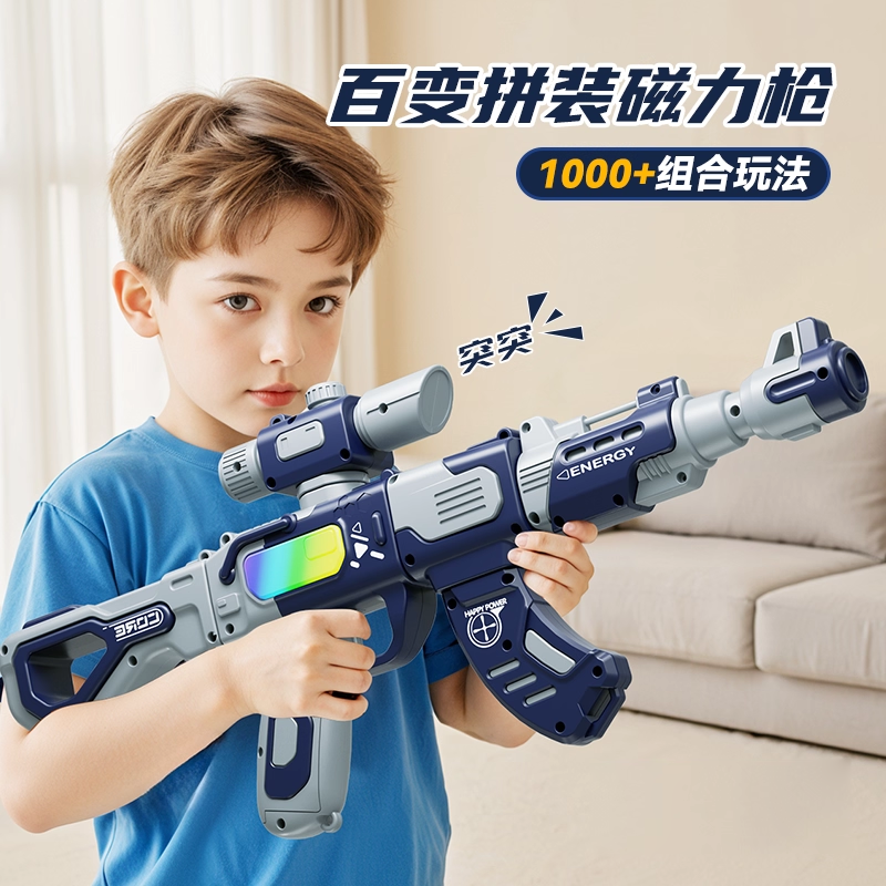 儿童电动声光玩具枪百变组合拼装磁力枪3男童6岁男孩生日礼物高级