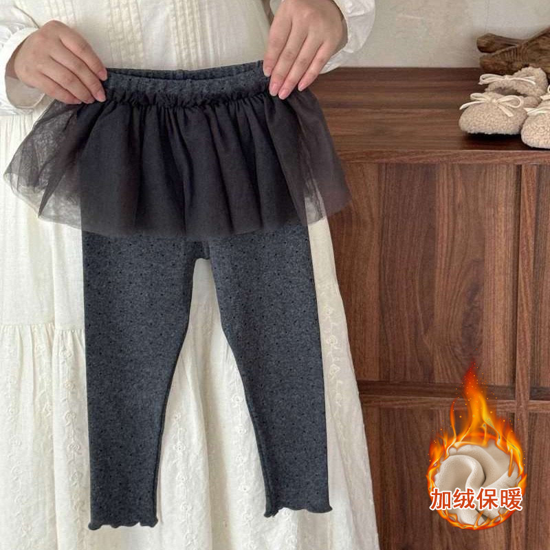 女童裤子秋装2025新款儿童秋冬加绒波点裙裤女宝宝秋季外穿打底裤