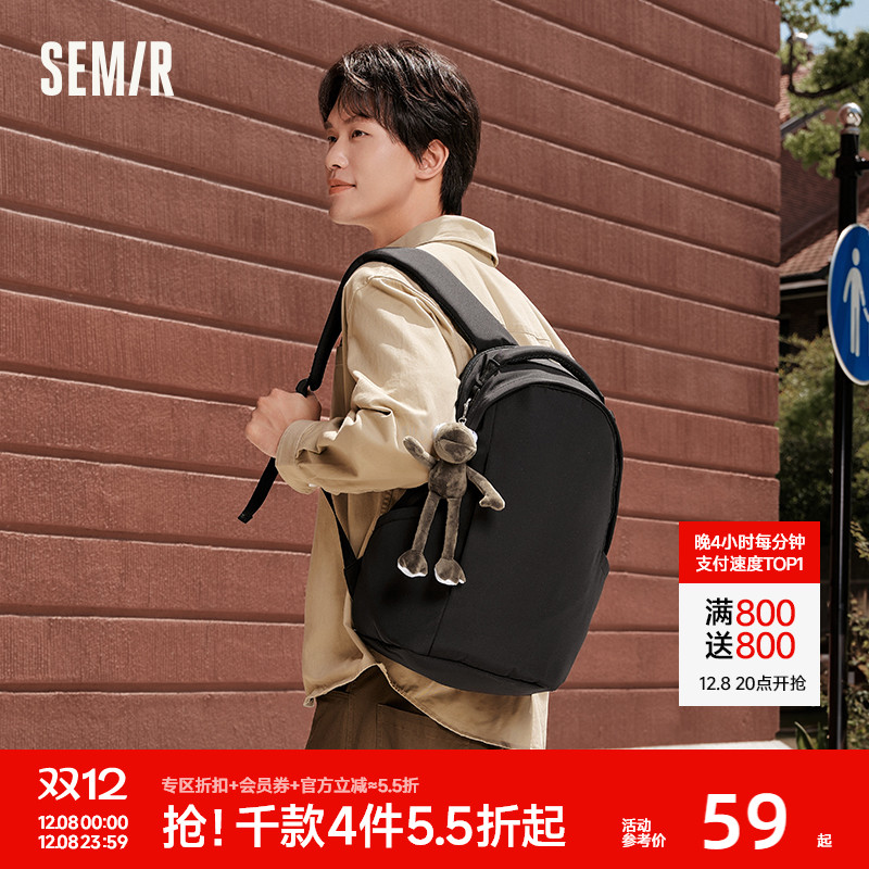 森马双肩包男2024新款潮流小众蛋壳背包大容量通勤电脑包情侣书包