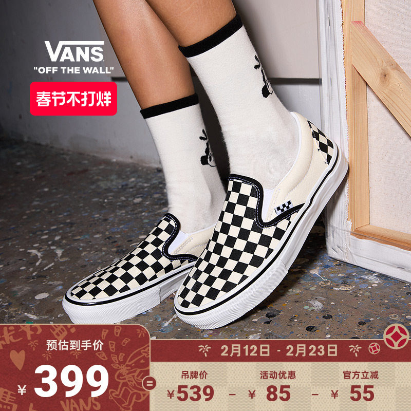 Vans范斯官方 Slip-On黑白棋盘格一脚蹬职业滑板鞋滑板初学者低帮