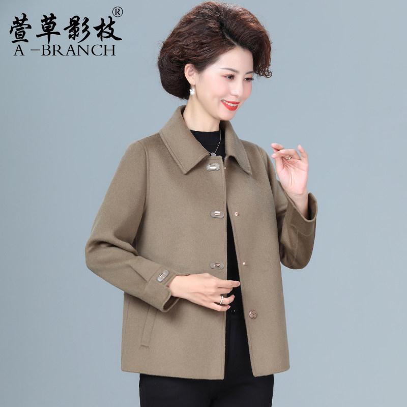 中老年秋冬妈妈装毛呢外套新款短款羊毛大衣秋冬高级感双面羊毛女