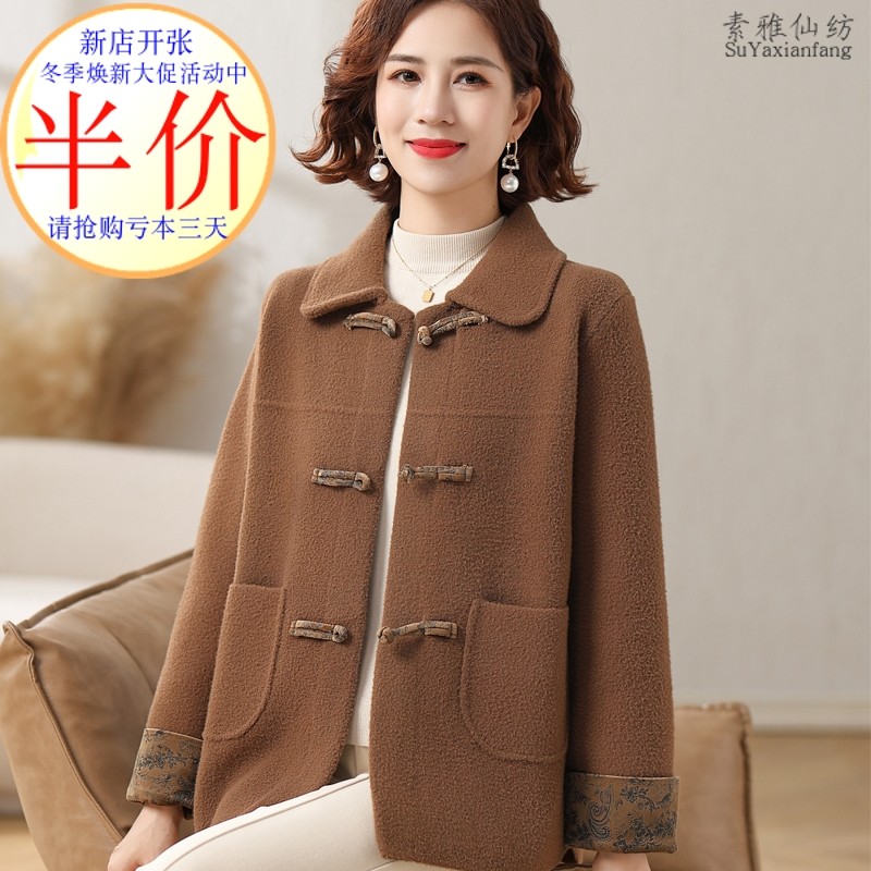 中老年女秋冬装新款羊毛呢国风外套高贵妈妈双面呢羊绒大衣服短款