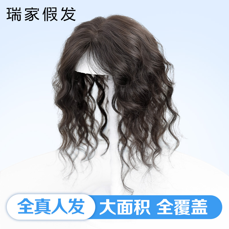 瑞家假发女片头顶真人发丝刘海片自然蓬松羊毛卷卷发片隐形补发片
