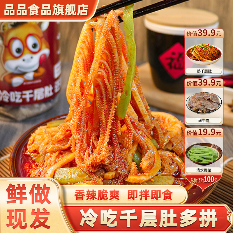 品品冷吃千层肚贡菜双拼2斤毛肚鸭肠牛肉3拼香辣红油凉拌即食零食