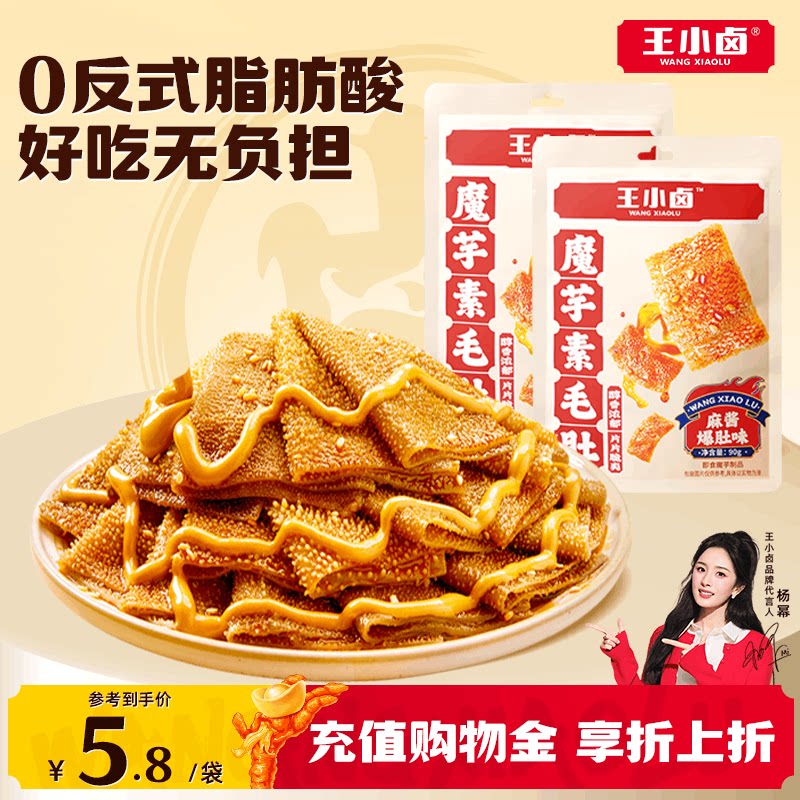 王小卤麻酱素毛肚90g/袋脆爽魔芋小包装办公室好吃辣条解馋小零食