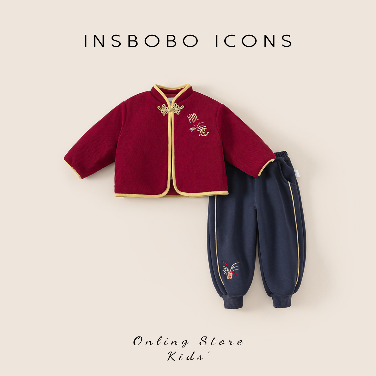 INSbobo儿童汉服2024秋冬新款加厚周岁礼服男宝女童唐装冬季衣服