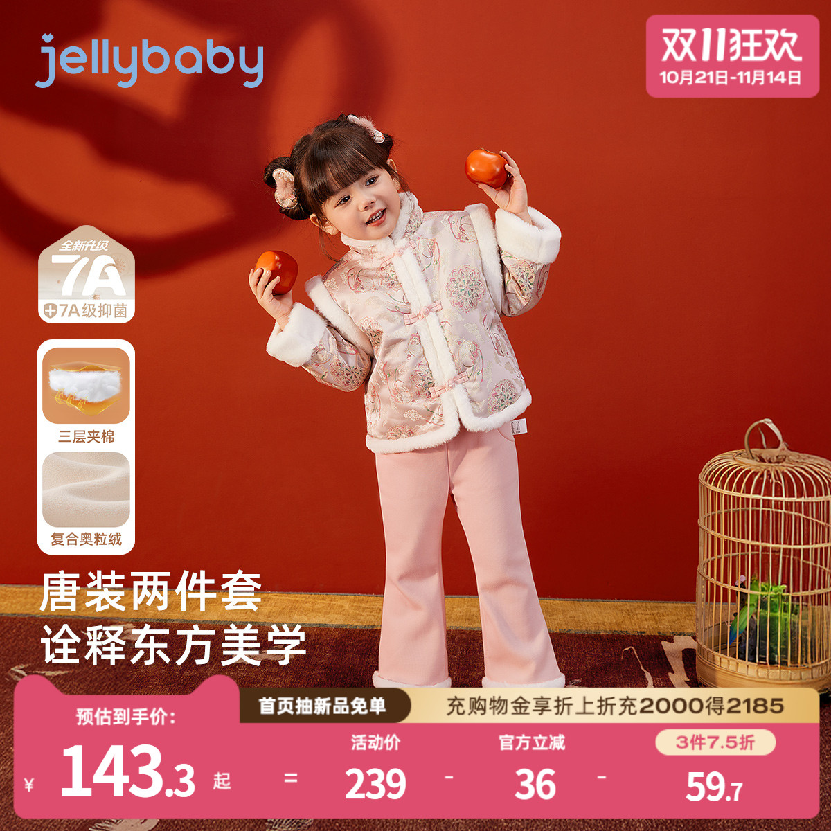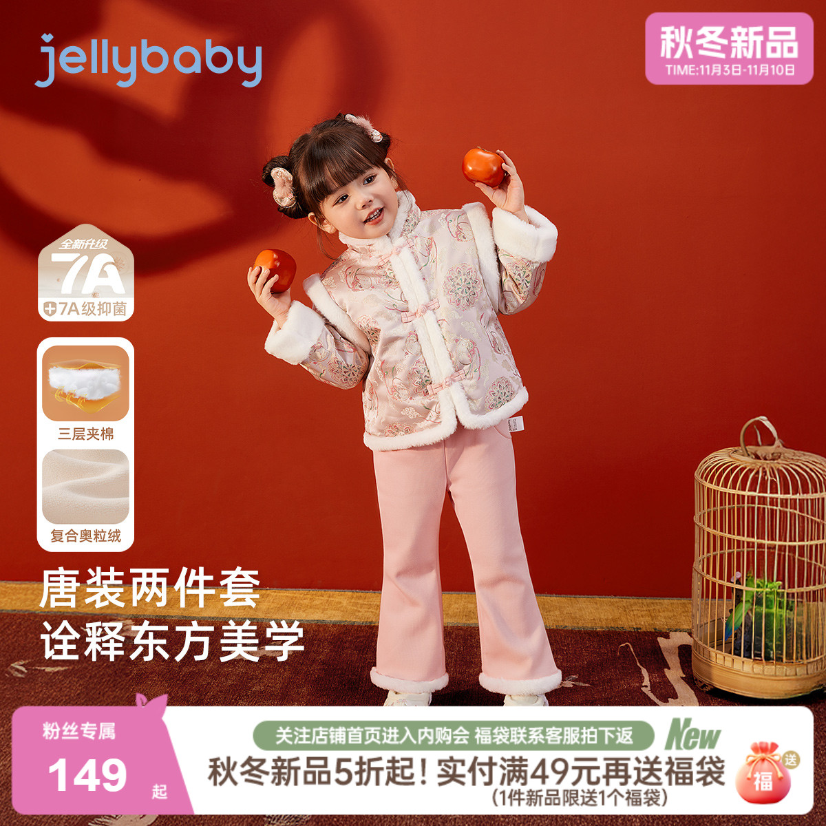 [抗菌锁温]女童唐装冬季新中式汉服冬装加厚宝宝夹棉保暖加绒套装
