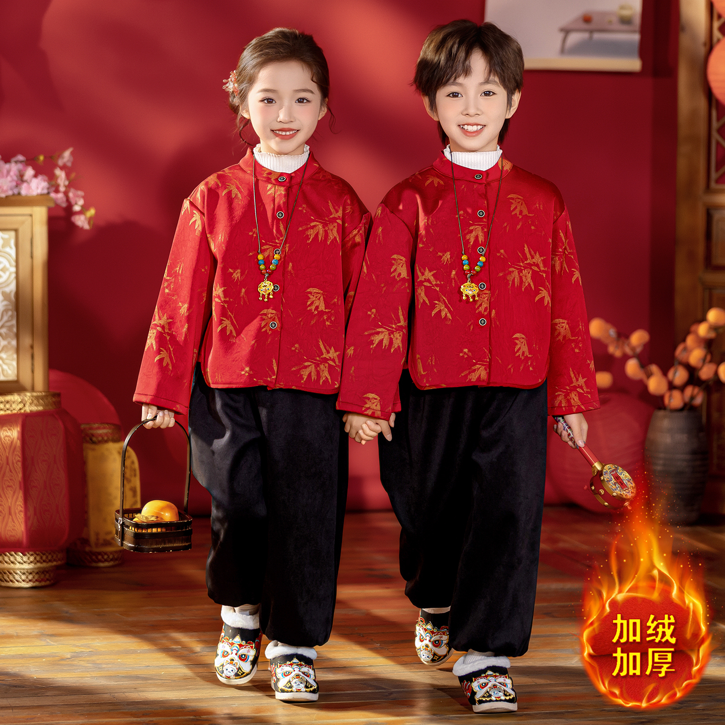 男童加绒汉服冬季中国风女童唐装冬装新中式古装拜年服儿童表演服