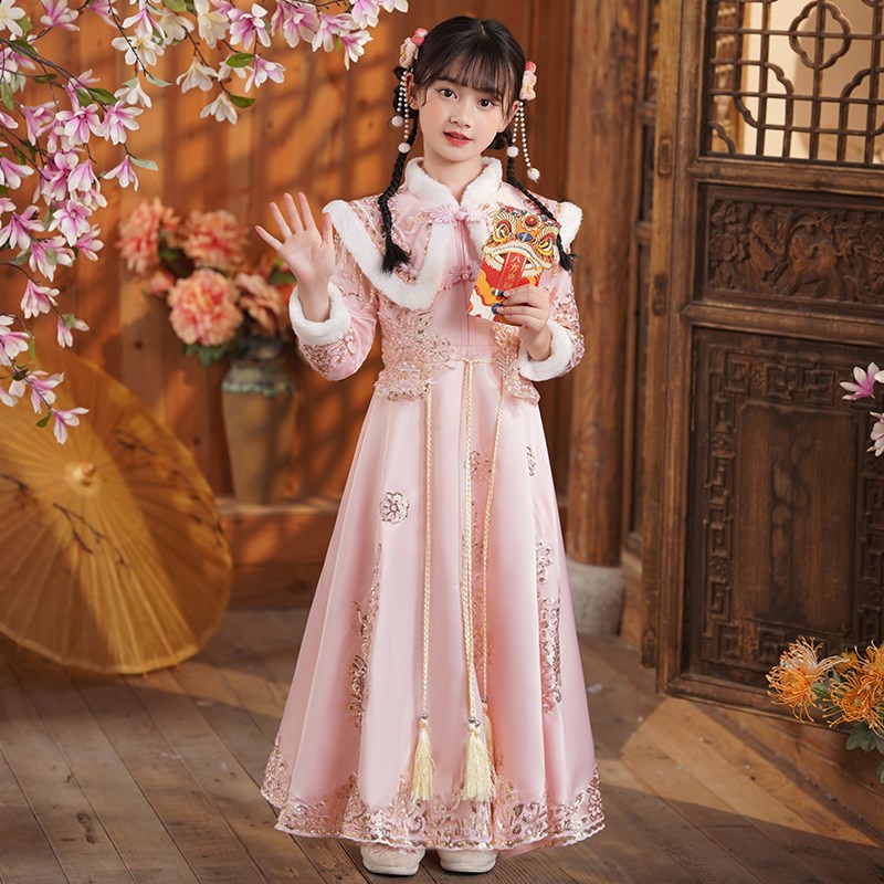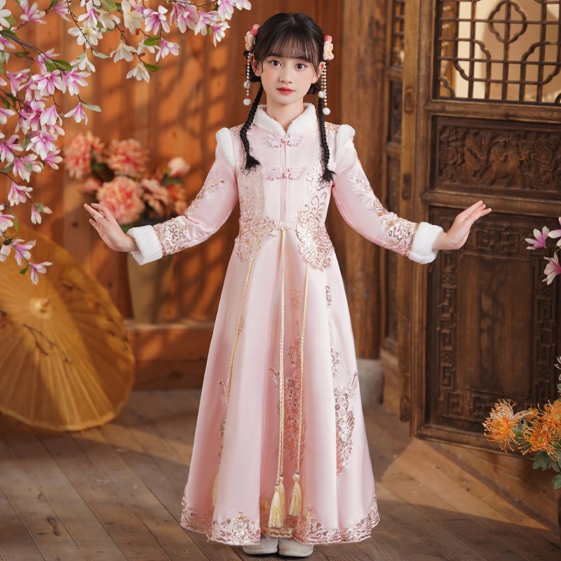 汉服女童唐装冬季中国风儿童旗袍女孩加绒加厚公主裙连衣裙子古装