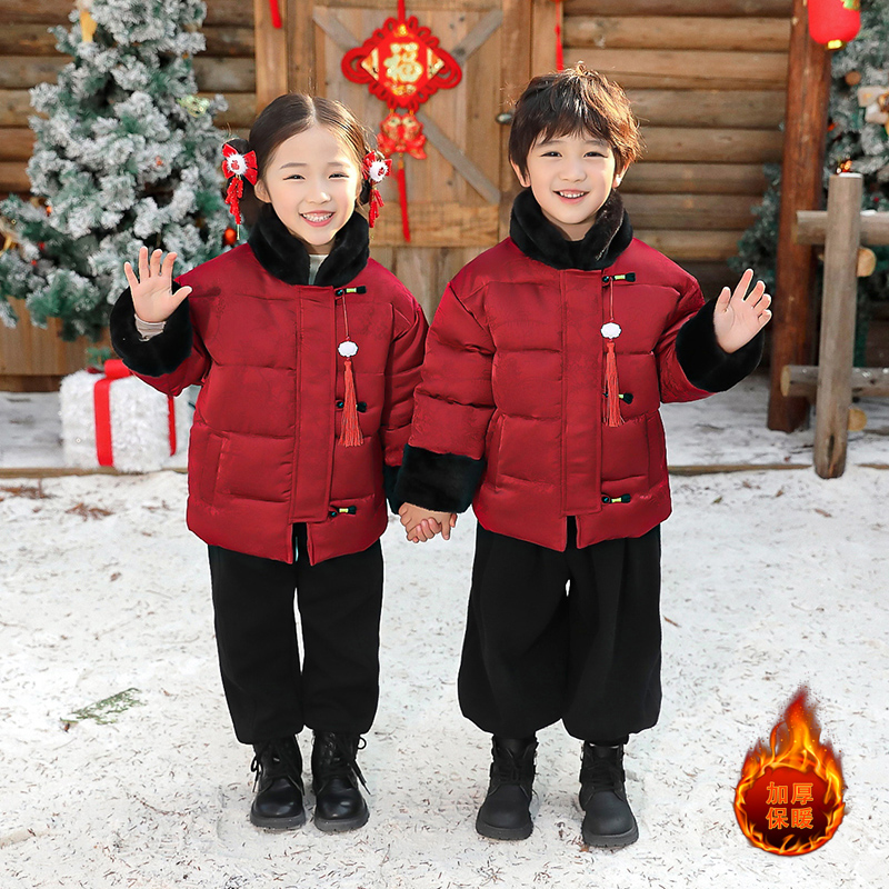 男童汉服秋冬新中式国风唐装亲子装幼儿园民族古装女童加绒演出服