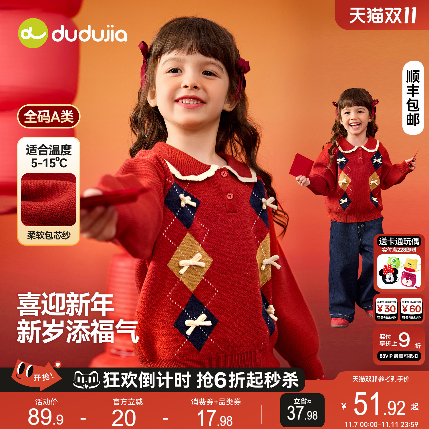 嘟嘟家女童唐装冬季宝宝新年装毛衣儿童喜庆拜年服小女生针织上衣