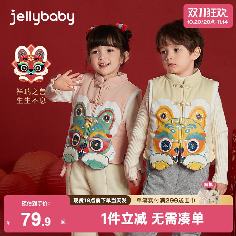 [中式国潮]女童唐装冬款卡通刺绣盘扣马甲喜庆萌兽加绒婴幼儿上衣