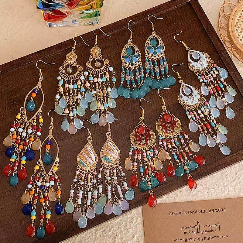 波西米亚风耳环女民族风耳饰度假风耳钉新疆西藏云南异域流苏配饰