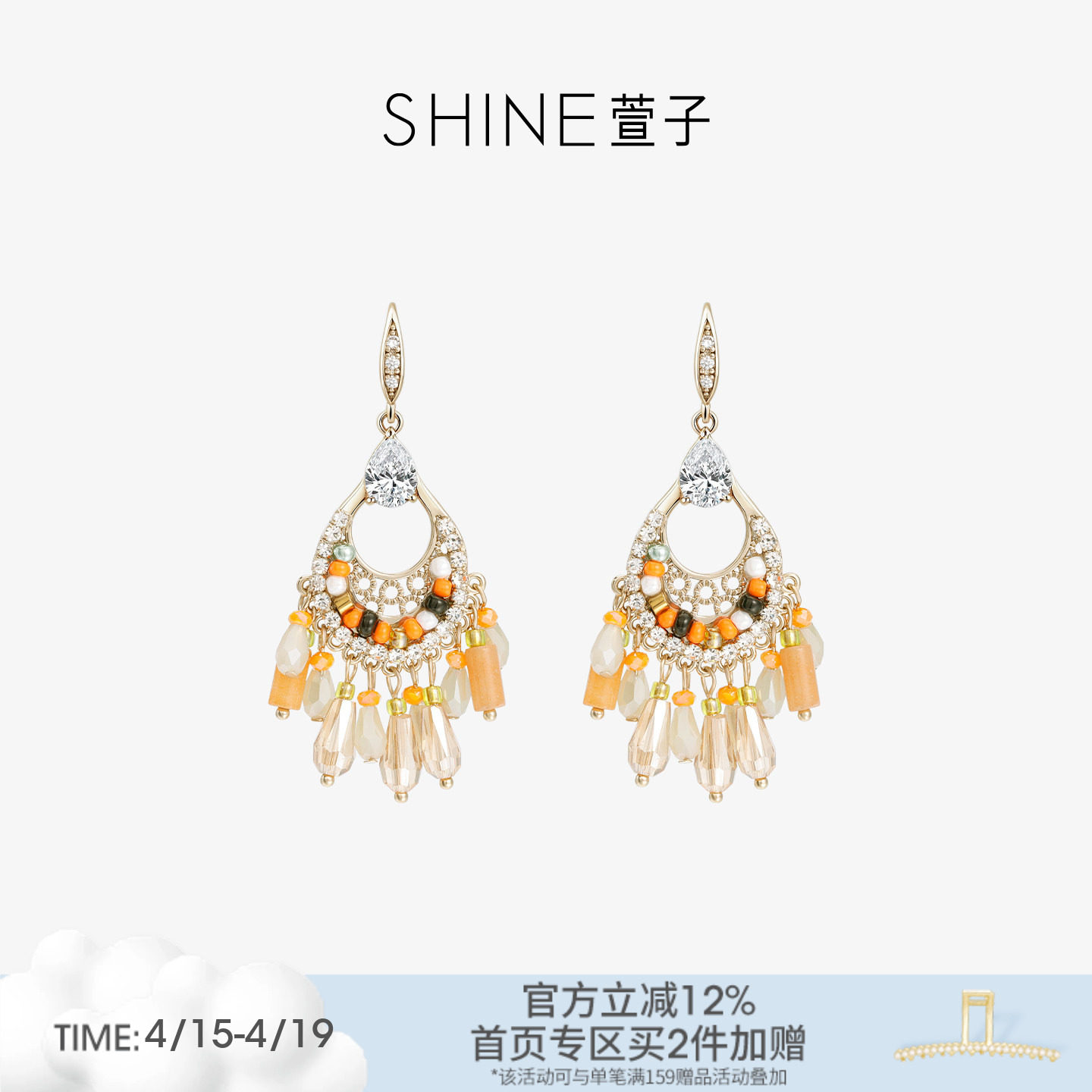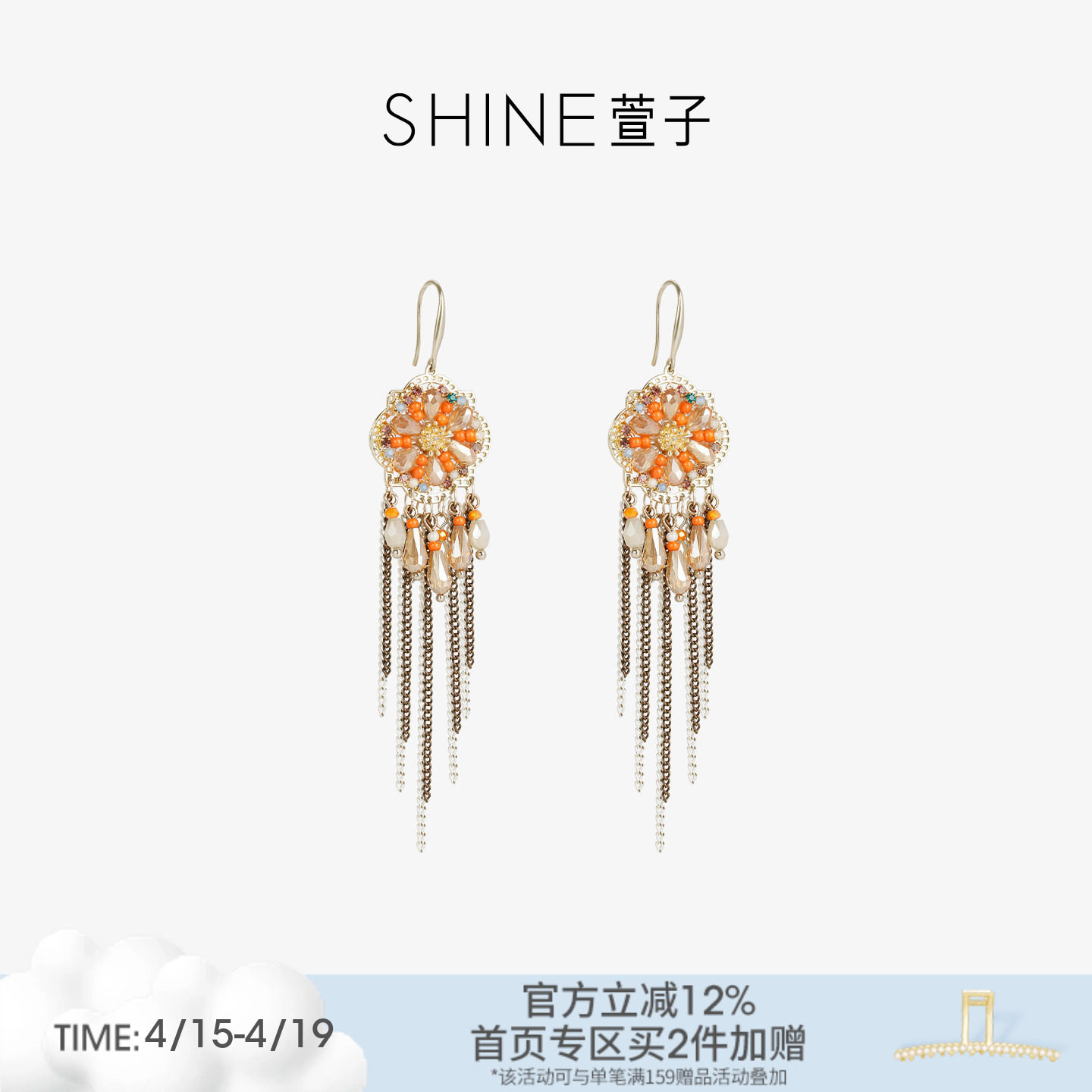 SHINE萱子原野牧歌系列优雅民族风流苏耳环设计感度假风耳钩