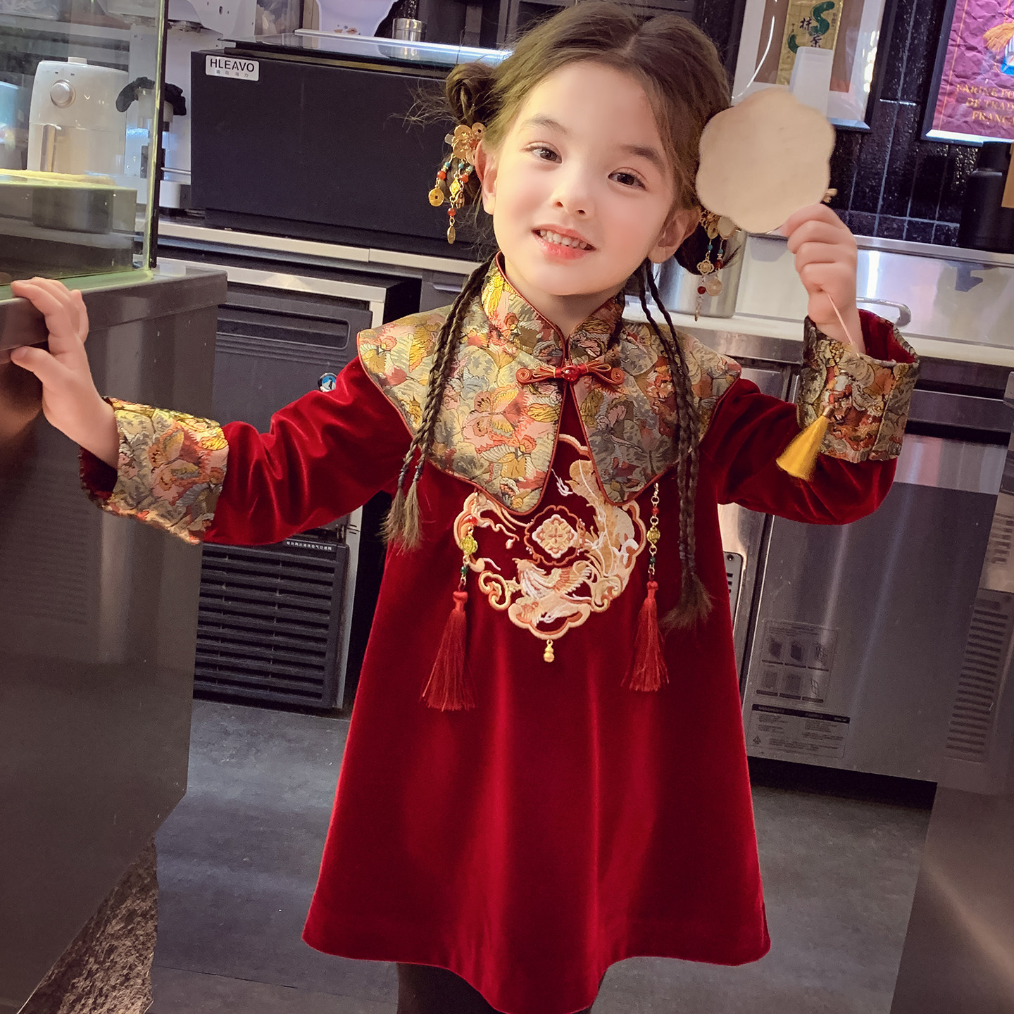 女童国风连衣裙冬装2025新款儿童新中式拜年裙女孩汉服加绒公主裙