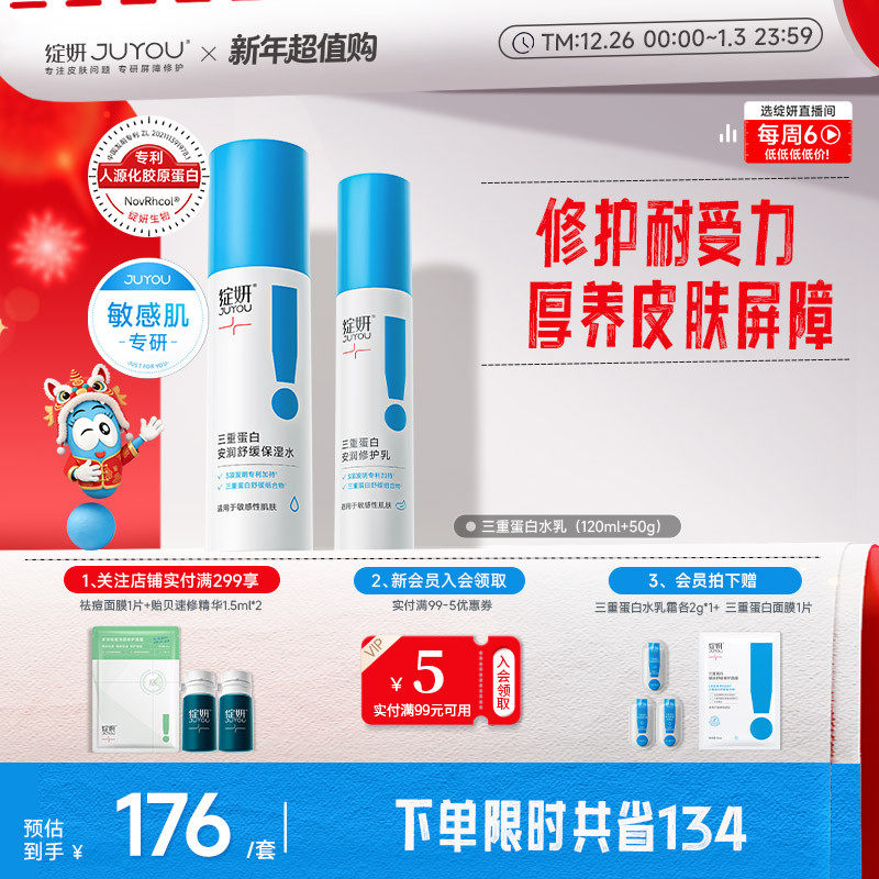 绽妍三重蛋白水乳套 保湿水 补水屏障修护乳 保湿乳液套装护肤品