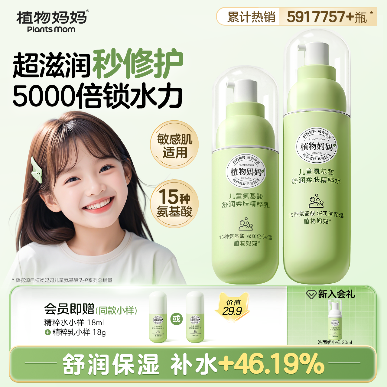 植物妈妈儿童水乳乳液面霜护肤品精华乳学生控油保湿补水套装正品