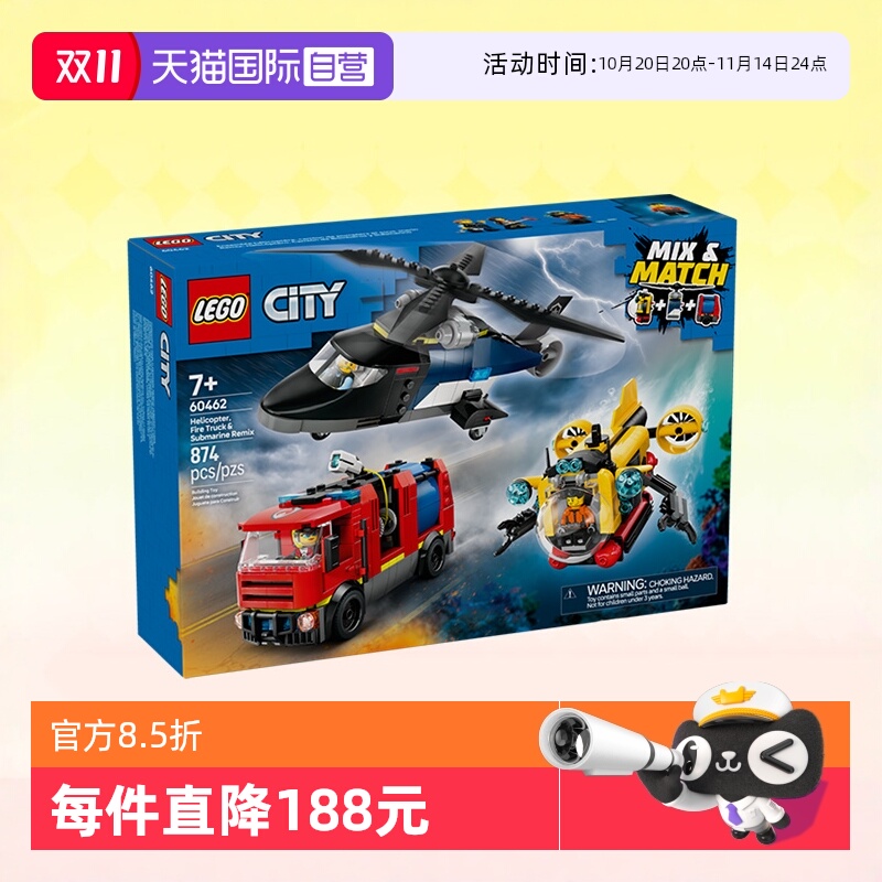 【自营】乐高积木城市60462直升机消防潜艇拼装儿童玩具生日礼物