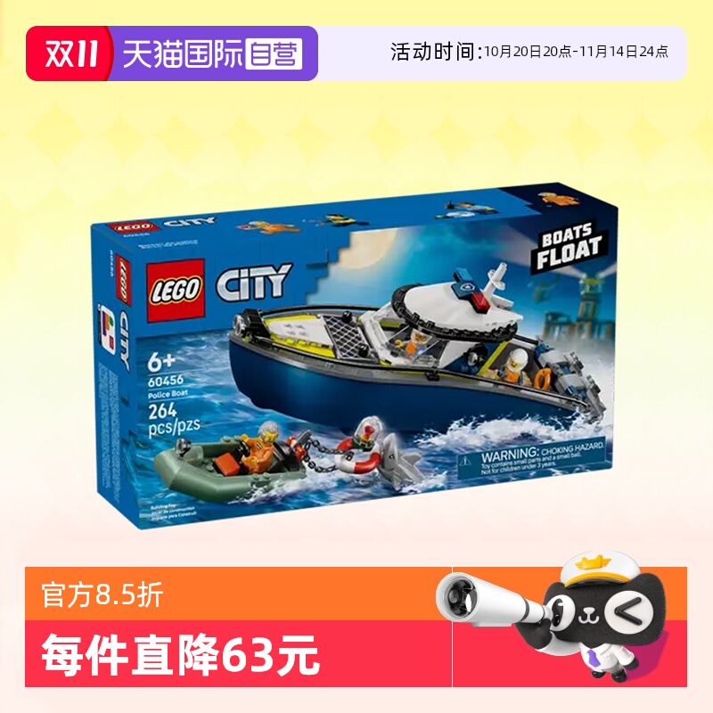 【自营】乐高积木城市60456警用巡逻艇拼装玩具男女孩节生日礼物