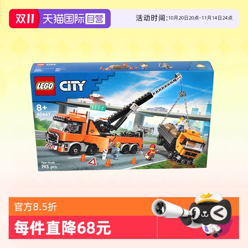 【自营】乐高积木城市大型60467重型塔吊拖车拼装玩具生日礼物
