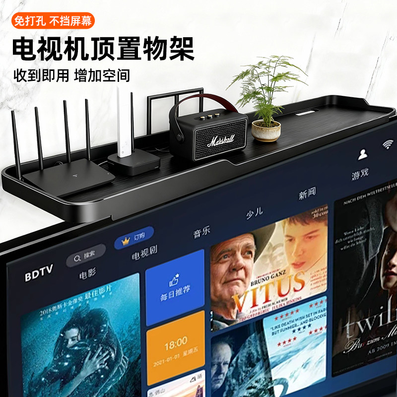电视机顶盒置物架免打孔电脑显示器顶部路由器支架收纳盒子托架子