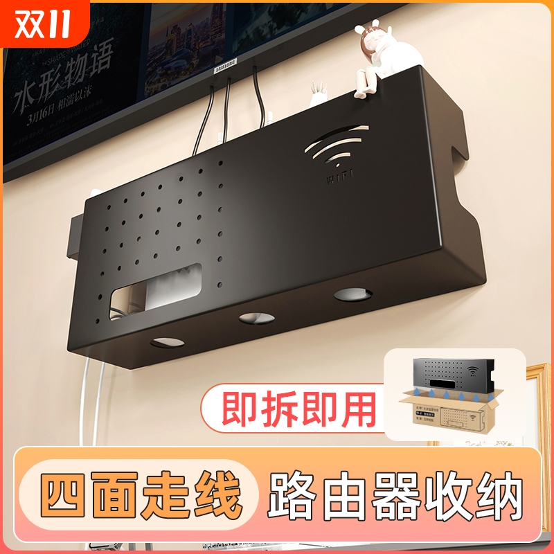 wifi路由器收纳盒墙上电视机顶盒置物架免打孔电线插座遮挡装饰柜