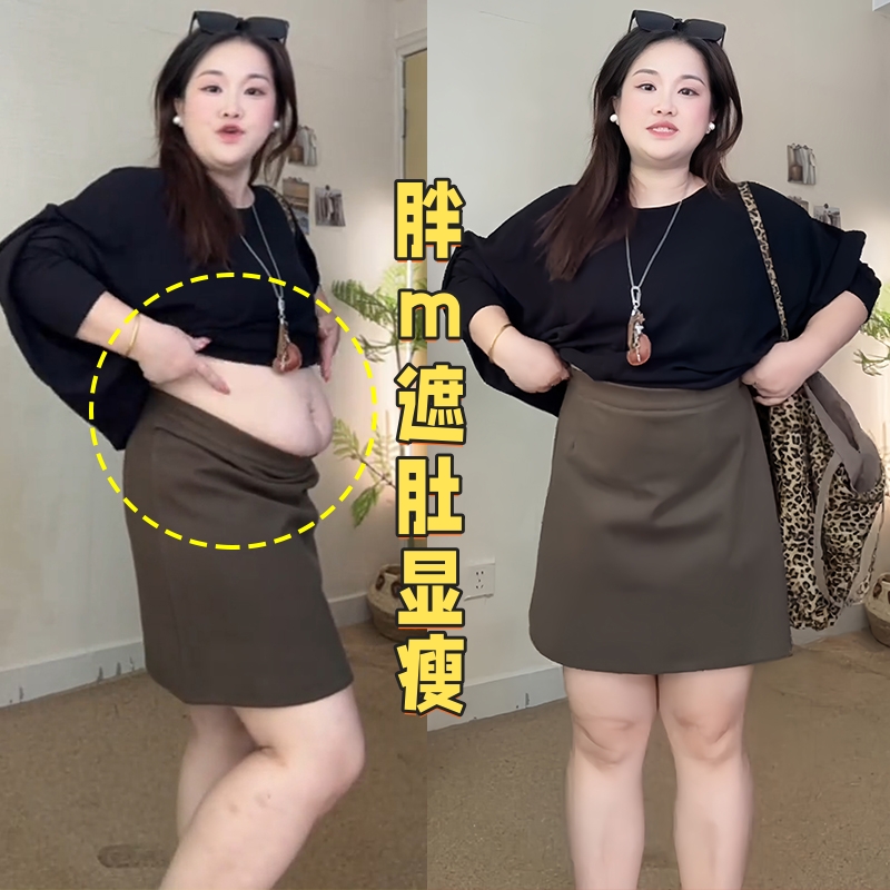 大码咖色毛呢半身裙女秋冬微胖mm小个子遮胯显瘦西装A字包臀短裙