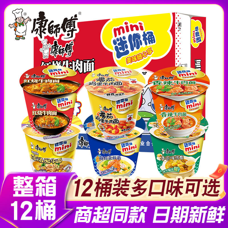 康师傅方便面整箱装泡面12桶经典混合批发速食香辣红烧牛肉面官网